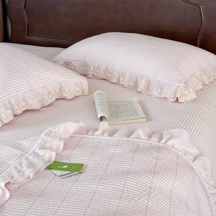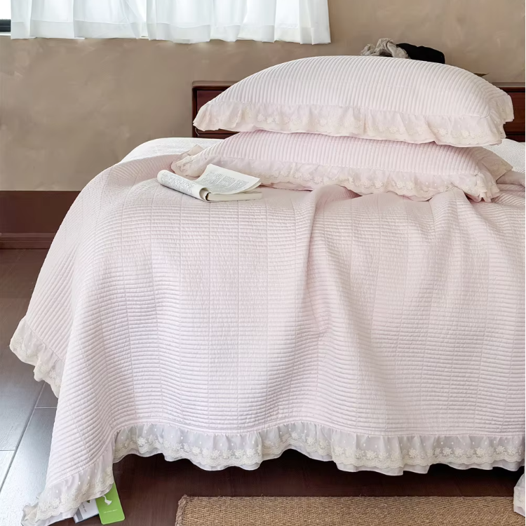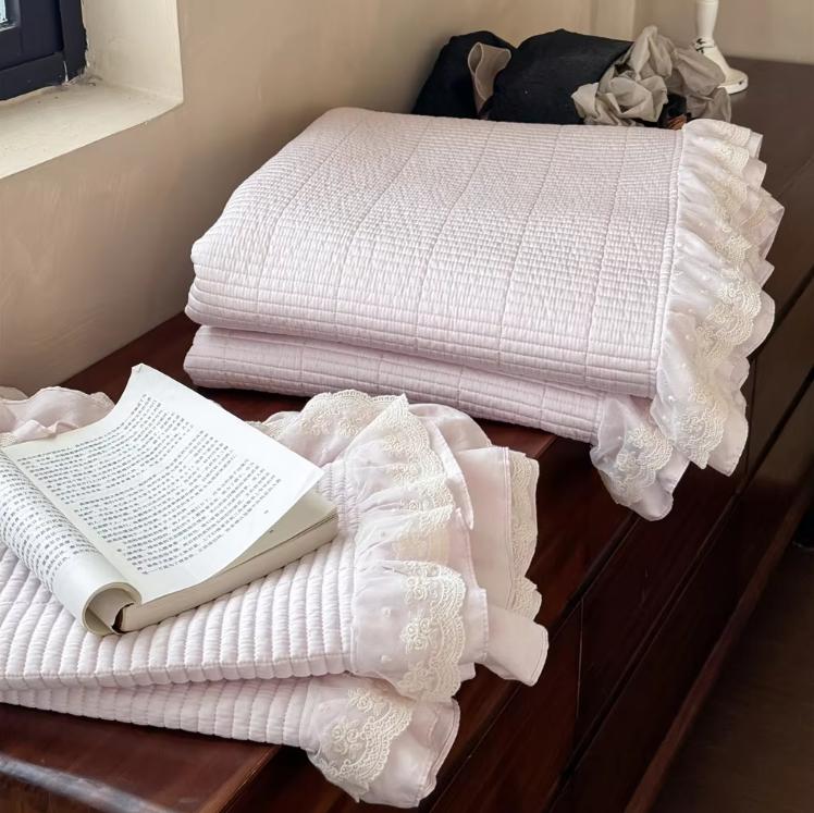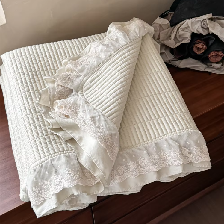 ผ้านวมพิมพ์ลายด้วยผ้าลูกไม้